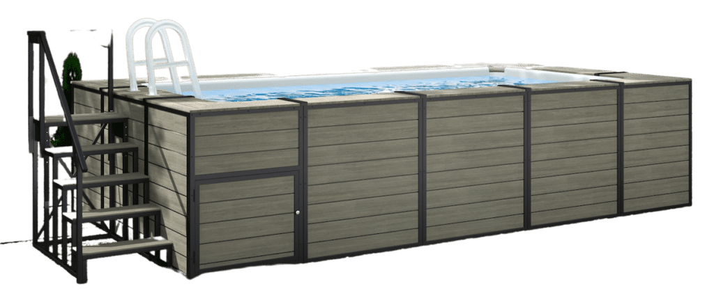 - Side panels made from high-quality polymer material similar to swim spas